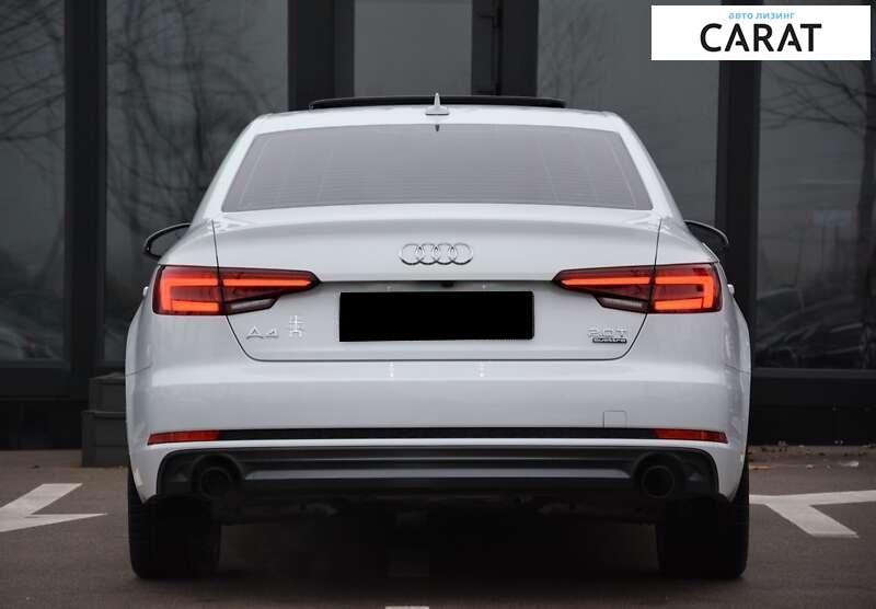В продажі Audi A4 (B9) Premium S-Line 2018 року випуску! Автомобіль в чудовому технічному та естетичному стані. Мінімальні пошкодження, безпека ціла! 2 комплекта гуми! Оснащений надійним 2.0 турбо-двигуном, автоматичною КПП, та повнопривідною трансмісією QUATTRO. Комплектація: – Pre-Sence (асистент попередження про зіткнення/наїзд) – Безключовий доступ на всі двері. Відкриття багажника помахом ноги – Люк – Підігрів передніх сидінь, пам’ять водійського місця – Багатозонний клімат-контроль – Датчики світла/дощу – Камера заднього виду – Режими керування – Естетична підсвітка салона – Датчики світла/дощу – Круїз-контроль – Підігрів та електроскладання дзеркал заднього виду