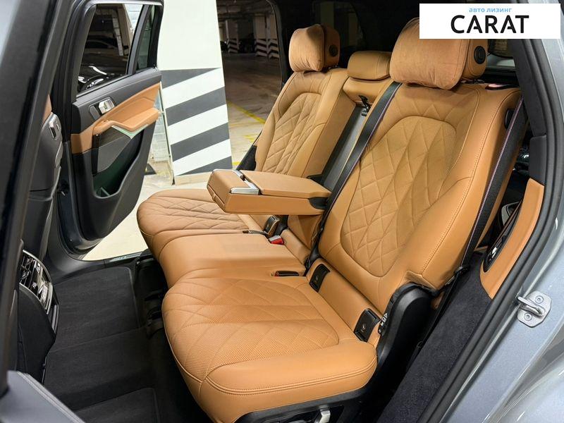 -Офіційний автомобіль, на гарантії, без ДТП і підкрасів. – Салон 7 місць -Кузов – Skyscraper Grau Metallic, повністю обклеєний кольоровою бронеплівкою Nardo Grey -Салон – шкіра Cognac -Стеля – алькантара Антрацит -Сувний панорамний дах -Пневмопідвіска -Гальмівна система M Sport чорні супорти -M Sport вихлопна система -Поворотна задня вісь -Декор салону – дерево з відкритими порами під лаком -Зовнішній M Sport Пакет -Зовнішній Shadowline -Передня решітка BMW Niere Iconic Glow -Передні сидіння – електрорегулювання зі спинками, що ламаються, підігрів, вентиляція, пам\’ять і масаж. -Середній ряд сидінь – електрорегулювання, підігрів -Задній ряд – електроскладання та підігрів -Електрошторки задніх дверей -М ремені безпеки -M Sport шкіряне кермо з електрорегулюванням -Клімат-контроль 5-зонний -Адаптивний круїз-контроль -Безключовий доступ -Комфортний доступ -Доводчики всіх дверей -Підігрів та охолодження передніх підсклянників -Акустична система об\’ємного звучання Harman Kardon -Glassaplication Craftedclarity -Камери кругового огляду 360 -Система моніторингу сліпих зон -Проекційний дисплей -E-sim -Заводський електрофаркоп Багатоспицеві колісні диски R23