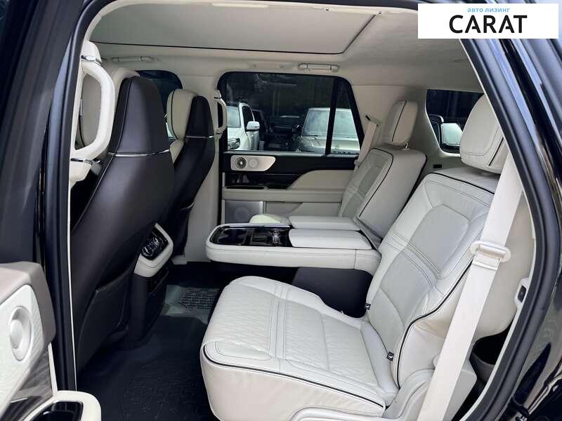 Двоступеневі бічні подушки безпеки водія та пасажира Lincoln Co-Pilot360 – активна система допомоги при паркуванні плюс автоматичні датчики паркування Lincoln Co-Pilot360 – Виявлення сліпих зон і покриття причепа Blind Spot Lincoln Co-Pilot360 – система попередження зіткнення з автоматичним екстреним гальмуванням (AEB) і Lincoln Co-Pilot360 – попередження про перехресний рух Пом’якшення зіткнення спереду Сповіщення про моніторинг водія Камера 360 Попередження про низький тиск у шинах Двоступеневі передні подушки безпеки водія та пасажира Система безпеки Canopy System Curtain 1-го, 2-го та 3-го рядів подушок безпеки Датчик присутності подушки безпеки Подушка безпеки для колін водія та пасажира Система Mykey, включно з обмежувачем максимальної швидкості, обмежувачем гучності звуку, раннім попередженням про низький рівень палива, програмованими звуковими дзвінками та сповіщувачем пояса з вимкненням звуку Задні замки безпеки дітей Підвісні передні поясні та плечові ремені безпеки, включаючи: регулятори висоти та натягувачі Задня камера з омивачем Фронтальна камера з омивачем Ліва бічна камера Права бічна камера Комфорт та функціональність Сидіння водія з регулюванням у 22 положеннях Сидіння пасажира з регулюванням у 22 положеннях Підлокітники водія та переднього пасажира та підлокітник на задньому сидінні, встановлений лише на борту Рульова колонка з електроприводом нахилу/телескопічна Шкіряне кермо з підігрівом і автоматичним нахилом Передній підсклянник з підсвічуванням Задній підстаканник 4 розетки постійного струму 12 В Компас Клавіатура Функція антиугін Круїз-контроль Швидкість дистанції з зупинкою руху HVAC -inc: повітропроводи під сидінням і повітроводи для стелі/стійки Ящик для рукавичок з підсвічуванням Підставка для ніг водія Обшивка стелі з імітації замші Dinamica Шкіряна обшивка дверей