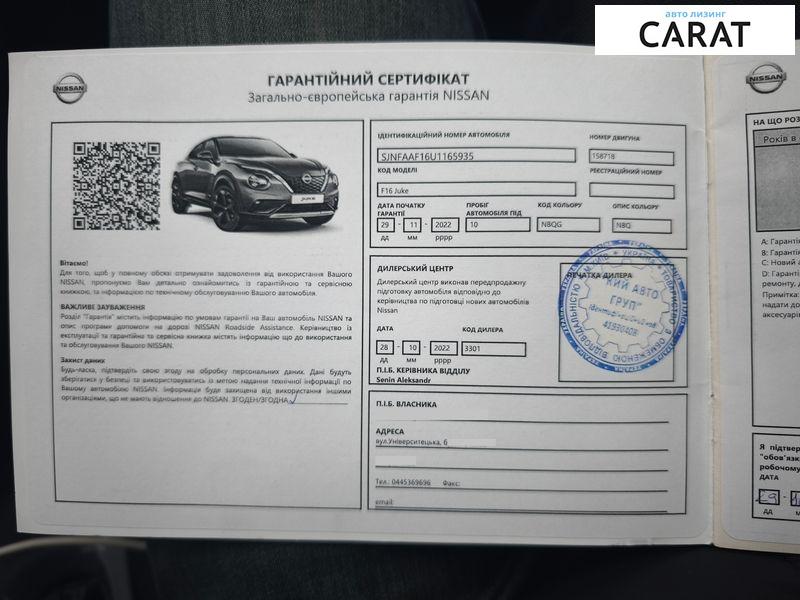 Nissan Juke 2022р.в. купували новим в офіційного дилера,одна власниця, оригінальний пробіг 57т.км. який підтверджується сервісною книгою є вся історія обслуговування, автомобіль проходив весь сервіс на фірмовому СТО.Бензиновий двигун, коробка автомат, камера заднього виду, круїз контроль,cистема старт/стоп і інше..Дуже красивий колір який йшов з додатковою доплатою,стан авто ідеальний жодна деталь не билась і не фарбувалась