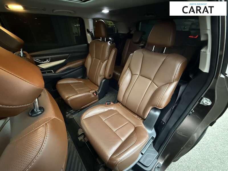 Subaru Ascent Touring у максимальній комплпектації Відновлена оригіналом Жодна подушка безпеки не спрацьовувала ! Додатково встановлена GSM сигналізація , відслідковуйте авто в реальному часі. Оснащена новим 2.4 турбо двигуном на 260 к.с. в парі з посиленним варіатором. комплектація: – панорамний дах, – бесключовий доступ, запуск кнопкою – адаптивній круїз-контроль, сліпі зони – утримання в смузі, – коньячний шкіряний салон – електро багажник, – 6 місць, капітанські крісла – задній клімат, – вентиляція , підігрів всіх сидінь – акустика Harman/Kardon, – мульти кермо, – камера перед/зад, – CarPlay; – електро сидіння з памяттю, – подвійний склопакет Візуально та технічно Subaru – в ідеальному стані У ходу – дуже приємна машина, без сторонніх звуків Клімат справний Двигун та АКПП сухі, без підтікань чи запотівань Ходова обслужена , ніяких сторонніх звуків Салон в чудовому стані
